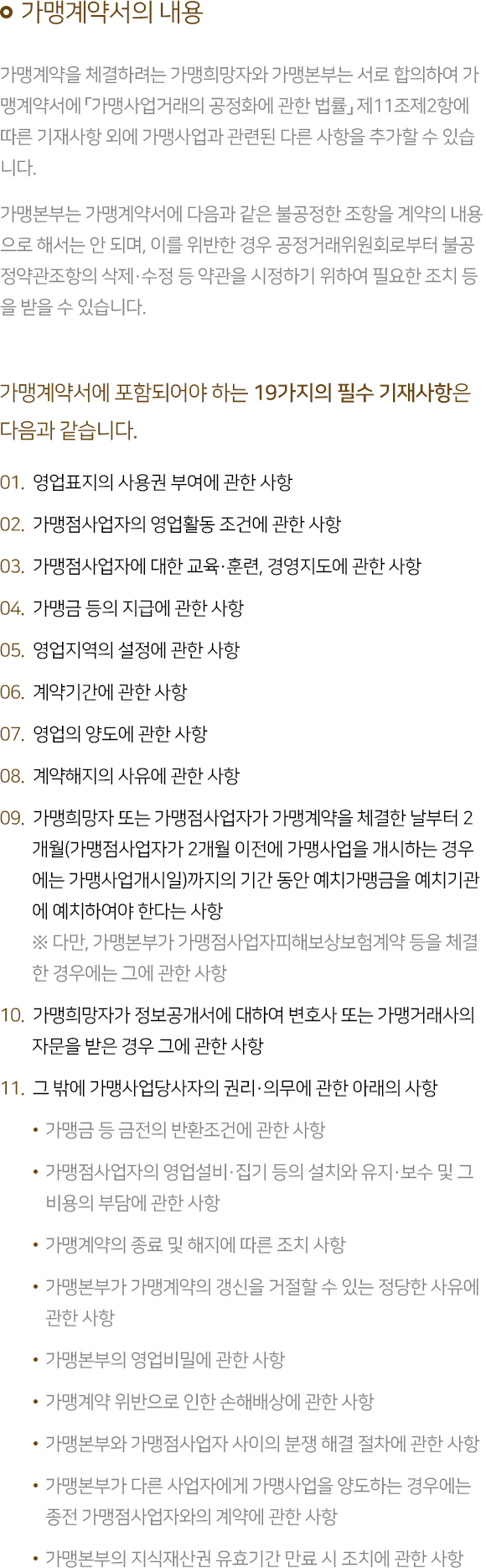 가맹계약서의 내용